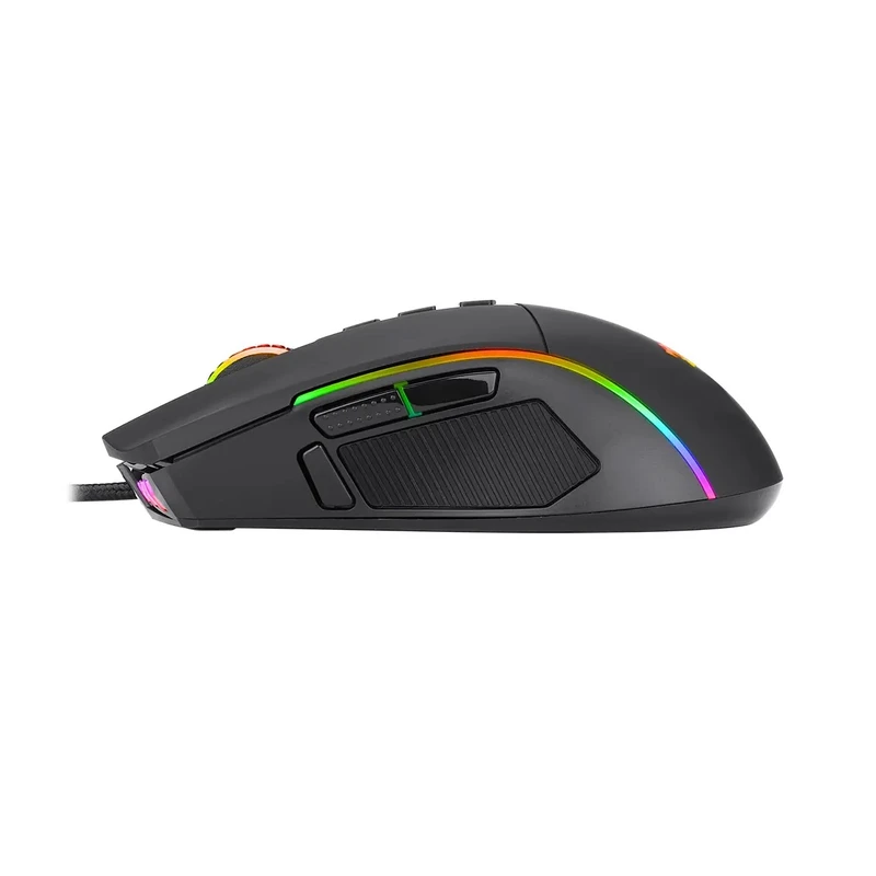 سنسور با دقت و سرعت بالا در بازی با ۵ سطح DPI قابل تنظیم (10۰۰ تا ۱60۰۰) تجربه بازی بهتر با 9 دکمه برنامهریزیشدنی و قابلیت ایجاد 5 پروفایل مختلف ایجاد فضای بازی جذابتر با 8 حالت نوپردازی RGB پویا از پیش تعیین شده پایداری بیشتر در حین بازیهای پرتحرک با دسته جانبی با سطح بافتدار کاهش خستگی در استفاده طولانی به وسیله طراحی متناسب با ساختار طبیعی دست انسان امکان سفارشیسازی کامل ماوس (دکمه ها، تنظیمات مدیا، DPI، و افکتهای رنگی) با نرمافزار ردراگون