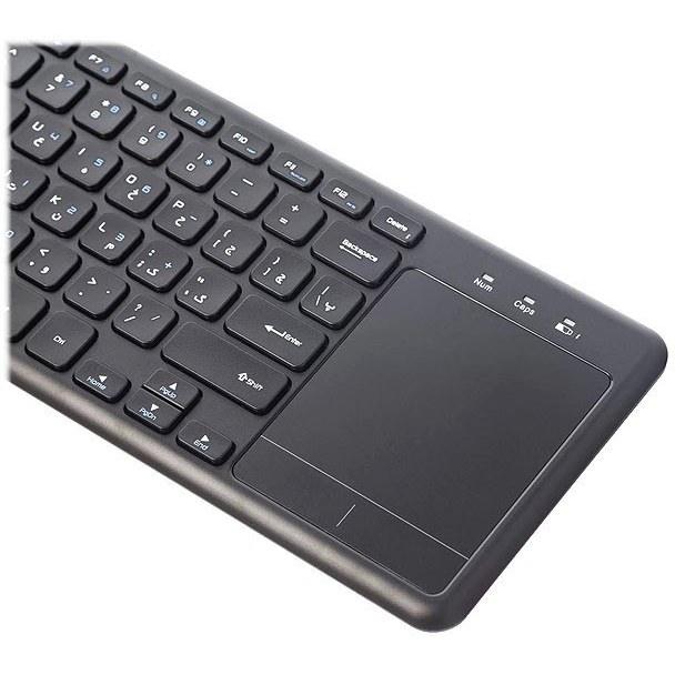 برای فعال کردن بلوتوث کیبورد می بایست کلیدهای FN+Delete را چند ثانیه همزمان نگه داشت, |, دمای عملیاتی: 10- تا 40 درجه سانتی گراد