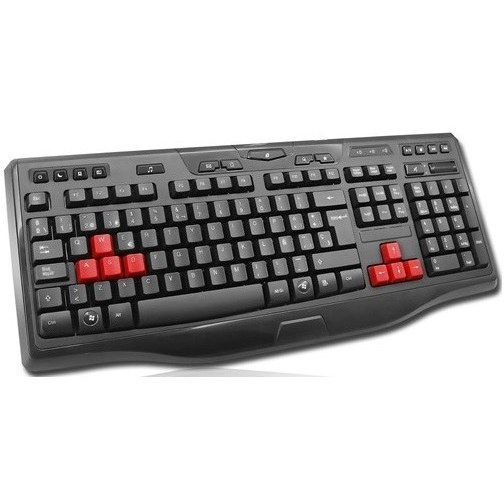 دارای کلید ولوم و هاب USB ، دارای دکمه های اضافی قرمز رنگ جهت گیم